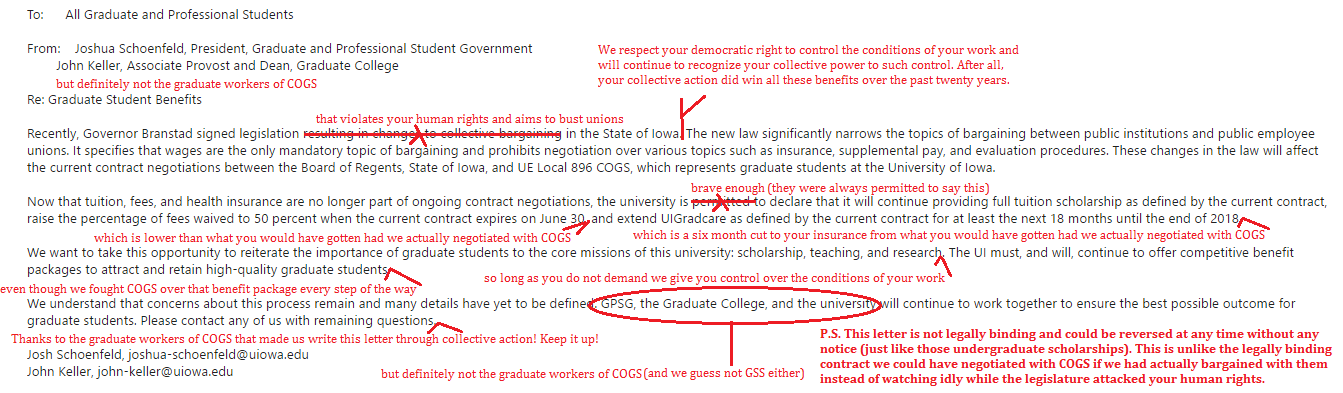 We thought that the university omitted some important details (including the cuts they proposed that same day – see their contract proposal here). We are happy to help with the corrections to their note!