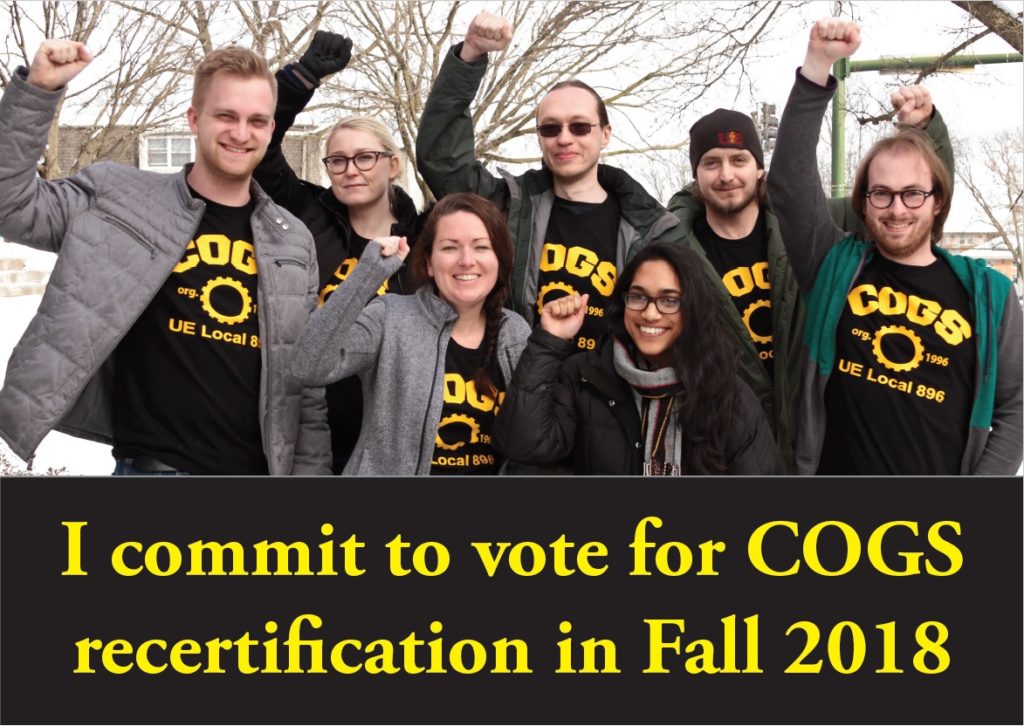 In the end, the vote in 2018 reaffirmed the support COGS has on campus. The final vote was 1559 votes for the union and 11 against, with over 80% of the bargaining unit voting. Graduate workers across campus, union members or not, clearly recognized the value of having a union. Given how active, involved, and visible COGS has been this summer, I’m sure that support has only grown.