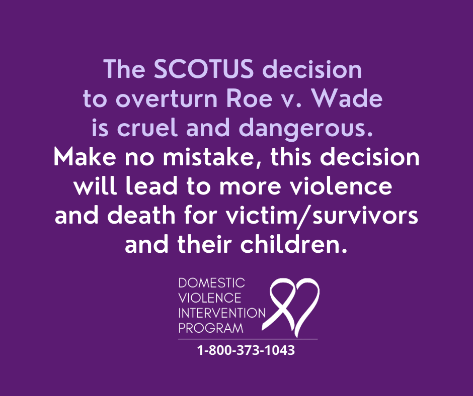 DVIP created the graphics below explaining the impact of the Dobbs decision on survivors of domestic violence.
